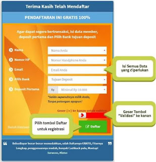 Ketik : DAFTAR.NamaAnda.NoHPkamu.Bank.Nominal.12246098 kirim ke 082244823999