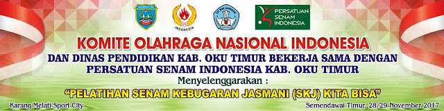 okutimurnews.id Komisi Olahraga Nasional Indonesia dan Dinas Pendidikan Kabupaten OKU Timur bekerja sama dengan Pesatuan Senam Indonesia menyelenggarakan Pelatihan Senam Kesegaran Jasmani (SKJ) bagi guru-guru olahraga tingkat SD/MI, SMP/MTs, SMA/SMK/MA Negeri maupun Swasta, berlangsung, mulai dari 28 November s/d 20 Desember 2017.