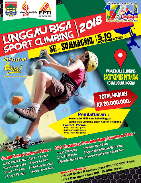 okutimurnews.id – Mempringati hari jadi kota Lubuk Linggau ke 17 Pengurus Daerah Federasi Panjat Tebing Indonesia (FPTI) Kota Lubuk Linggau, mengadakan Linggau Bisa Sport Climbing 2018 Se-Sumbagsel, dengan Tema “Sang petarung sejati bukan hanya berani melawan kucing di kandang tetapi berani melawan singa di luar”.