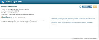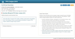 Cara Konfirmasi Kesediaan dan Cetak Form A1 PPG 2019 Angkatan 1 – Setelah dinyatakan lulus seleksi akademik (pretest) dan seleksi administrasi, ternyata calon peserta PPG Dalam Jabatan 2019 Angkatan 1 masih diberi kesempatan untuk menyatakan kesiapan dan kesediaannya mengikuti PPG ini. Ini tentu menjadi jawaban atas berbagai pertanyaan yang muncul, khususnya Bapak/Ibu yang menginginkan ikut PPG periode berikutnya dengan alasan keluarga dan lainnya. Dengan demikian anda bisa menyatakan “Tidak Bersedia” untuk mengikuti antrian pada PPG tahap selanjutnya.
