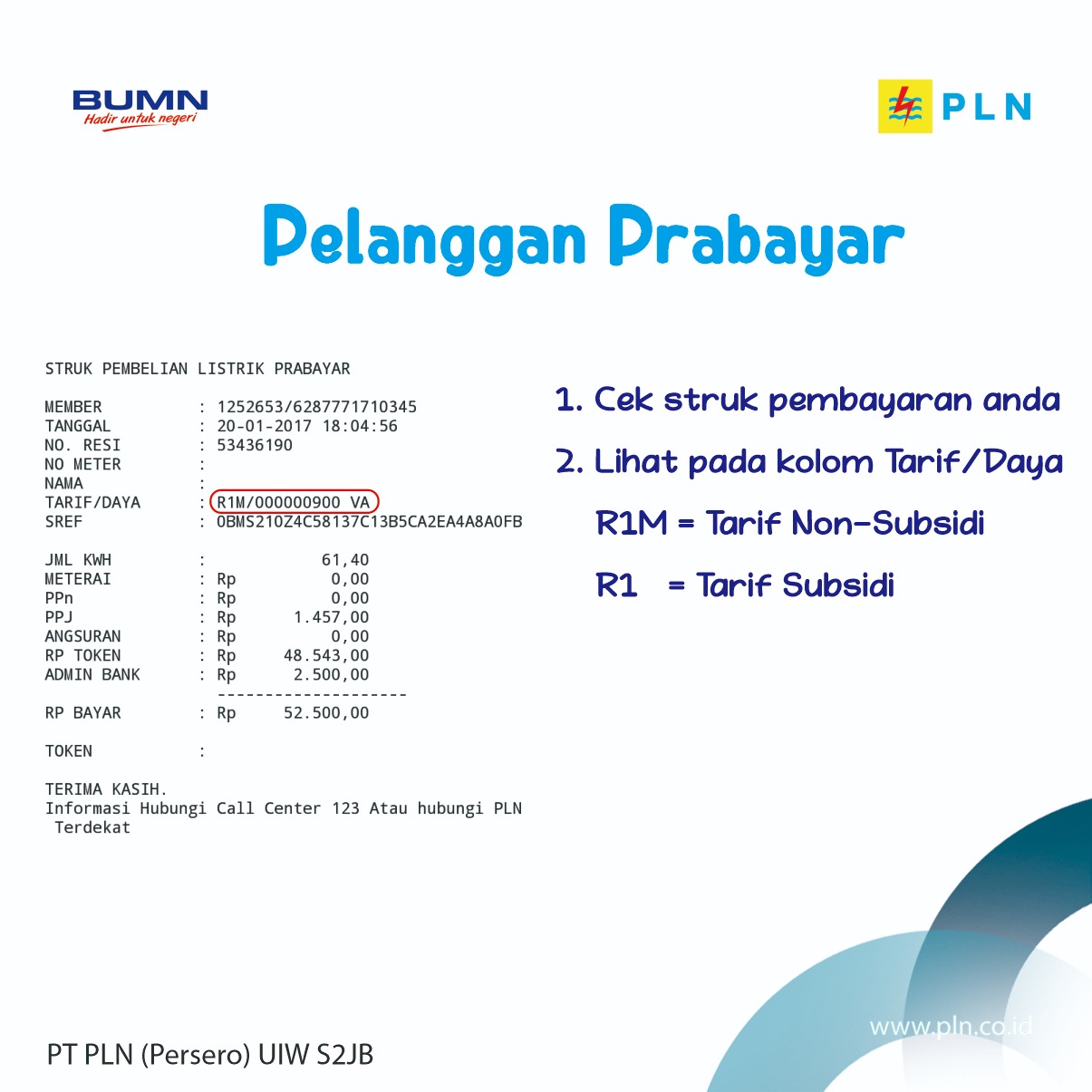 Dengan ID tersebut, pelanggan akan mendapatkan token senilai pemakaian tertinggi dalam 3 bulan terakhir.